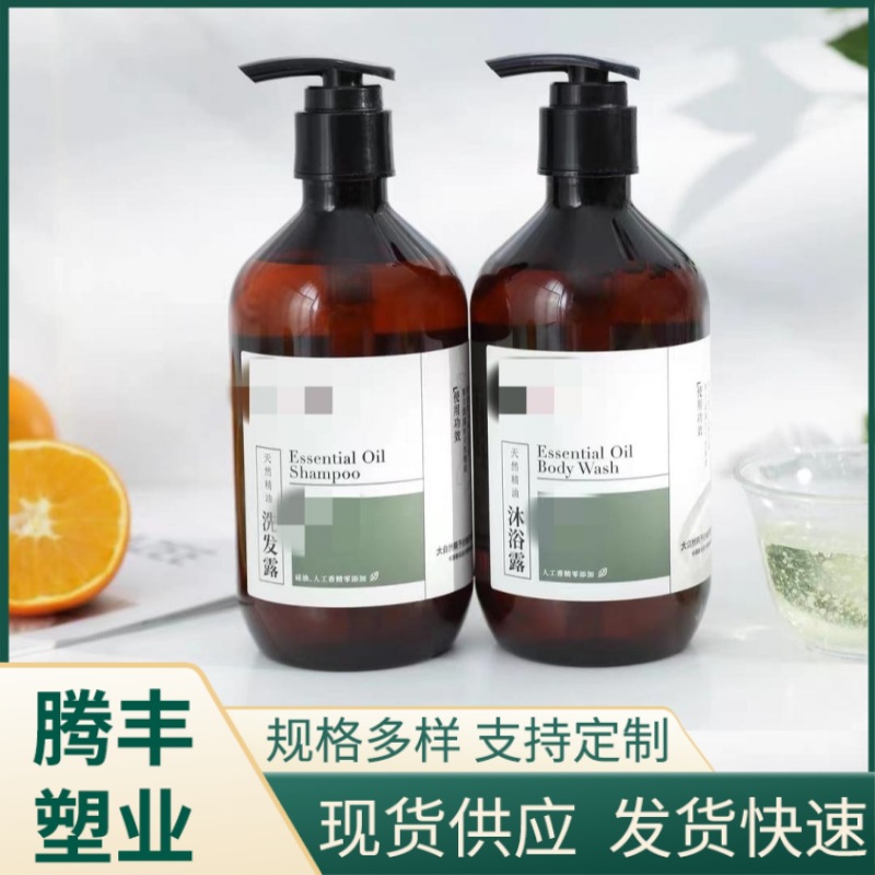スポット300ミリリットル透色斜肩洗浄プラスチック入浴露瓶500ml茶色押しpetシャンプーボトル
