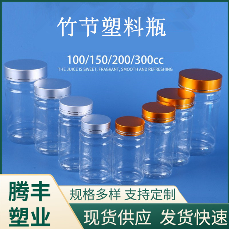 スポット50 150 300mlミリリットル透明プラスチック竹節瓶固体錠剤広口PET保健品瓶