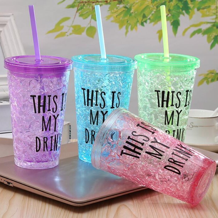 メーカー直販透明カップ夏冷飲カップ砕氷カップカスタマイズ可能二重ストローカップギフトカップ氷