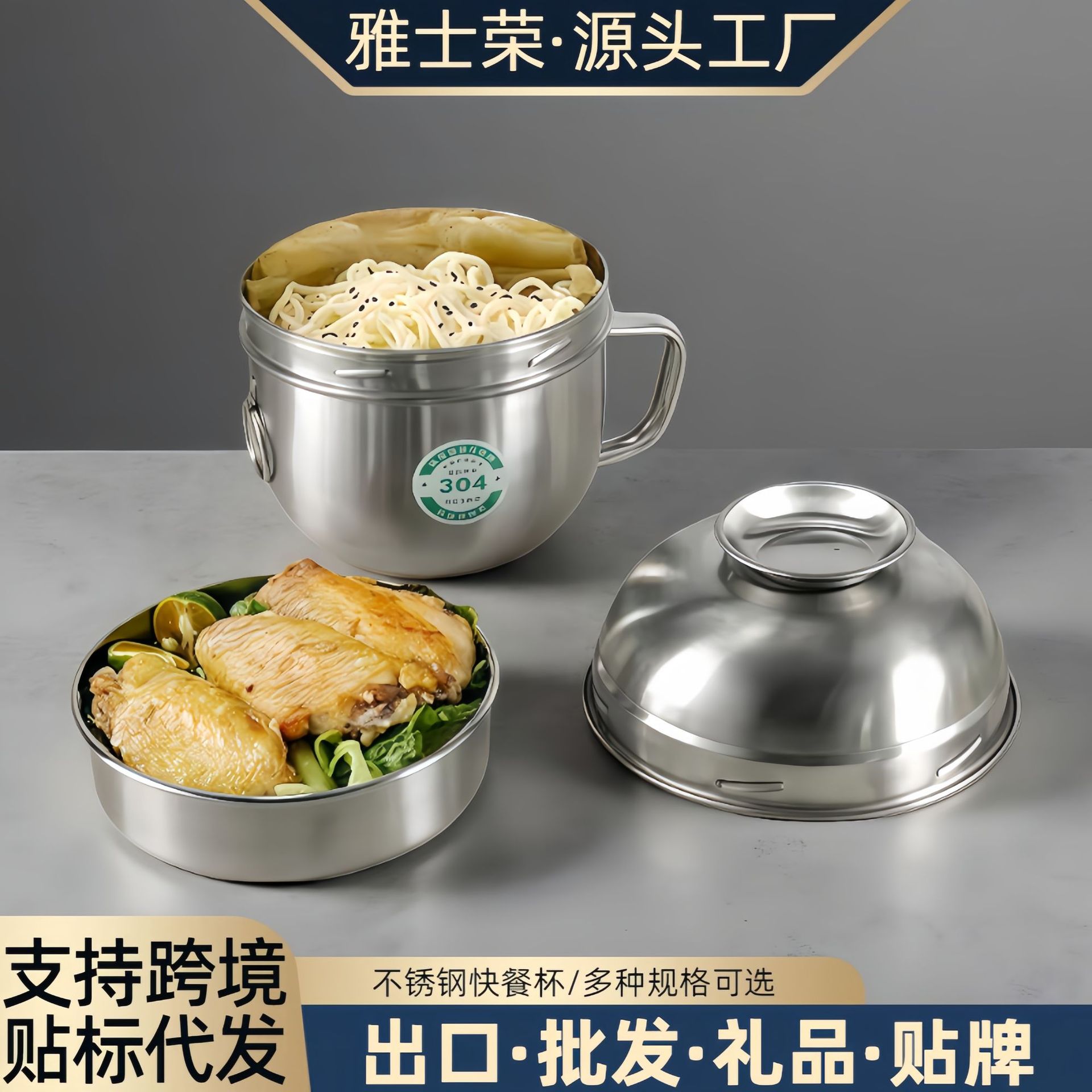 ステンレス円形二重弁当箱サラリーマン分格弁当箱学生蓋付きカップラーメン食堂弁当箱
