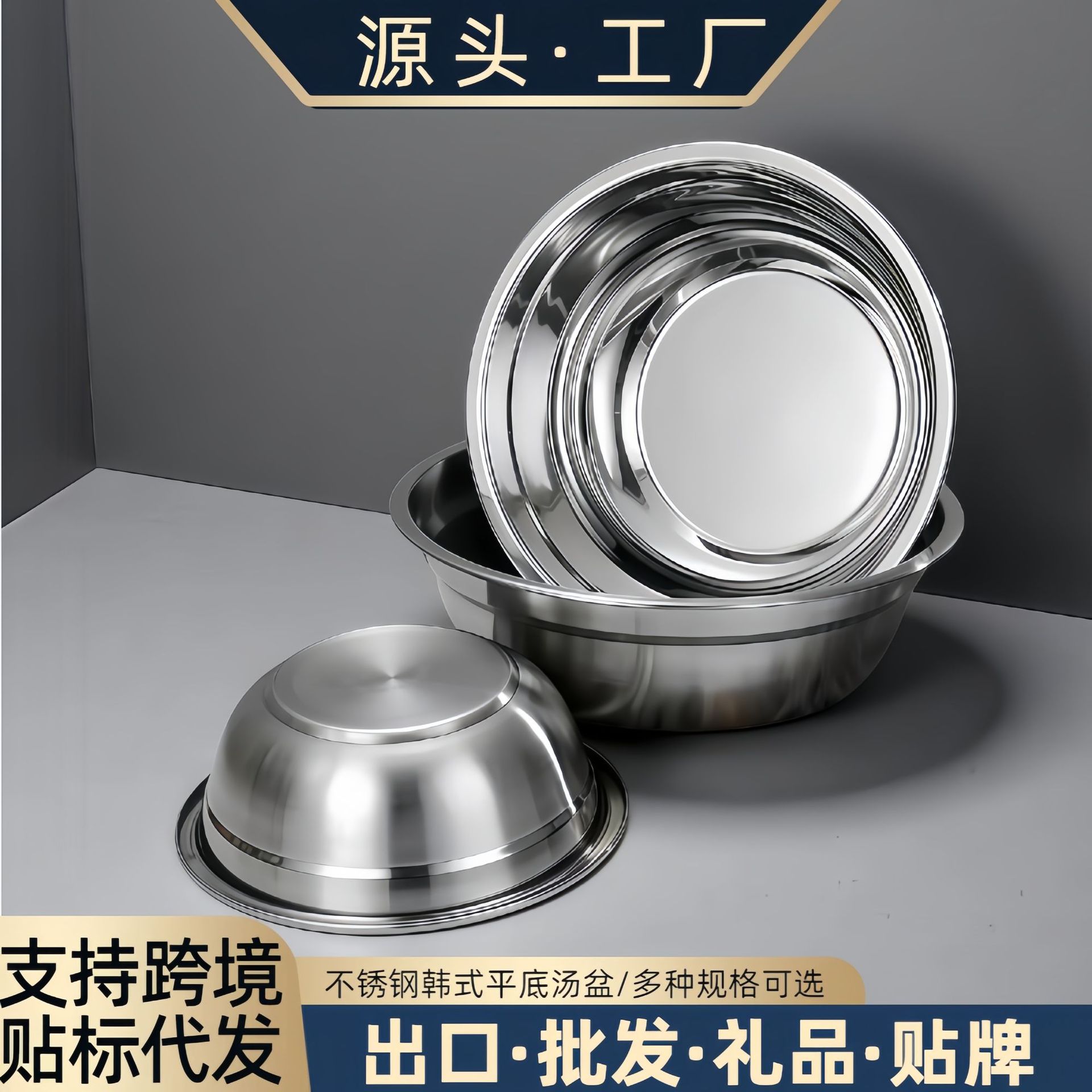 特に厚いステンレスのたらいの韓国式のスープのたらいの非磁性の家庭用の多用のたらいは深く反対のたらいの卵のたらいの学生の食堂のたらいを打ちます