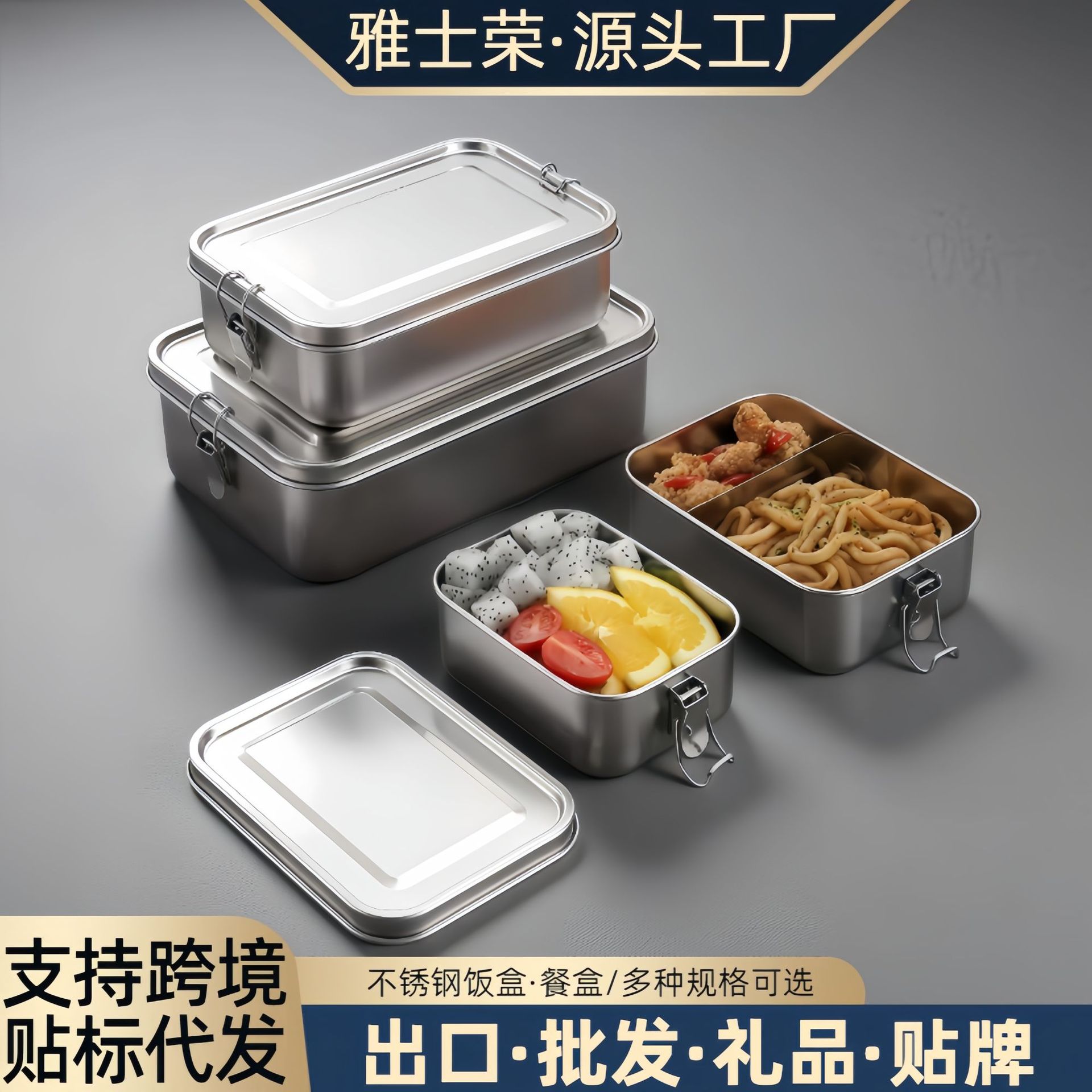 304ステンレス弁当箱長方形二重蓋付き弁当箱単層保冷箱学生食堂弁当箱