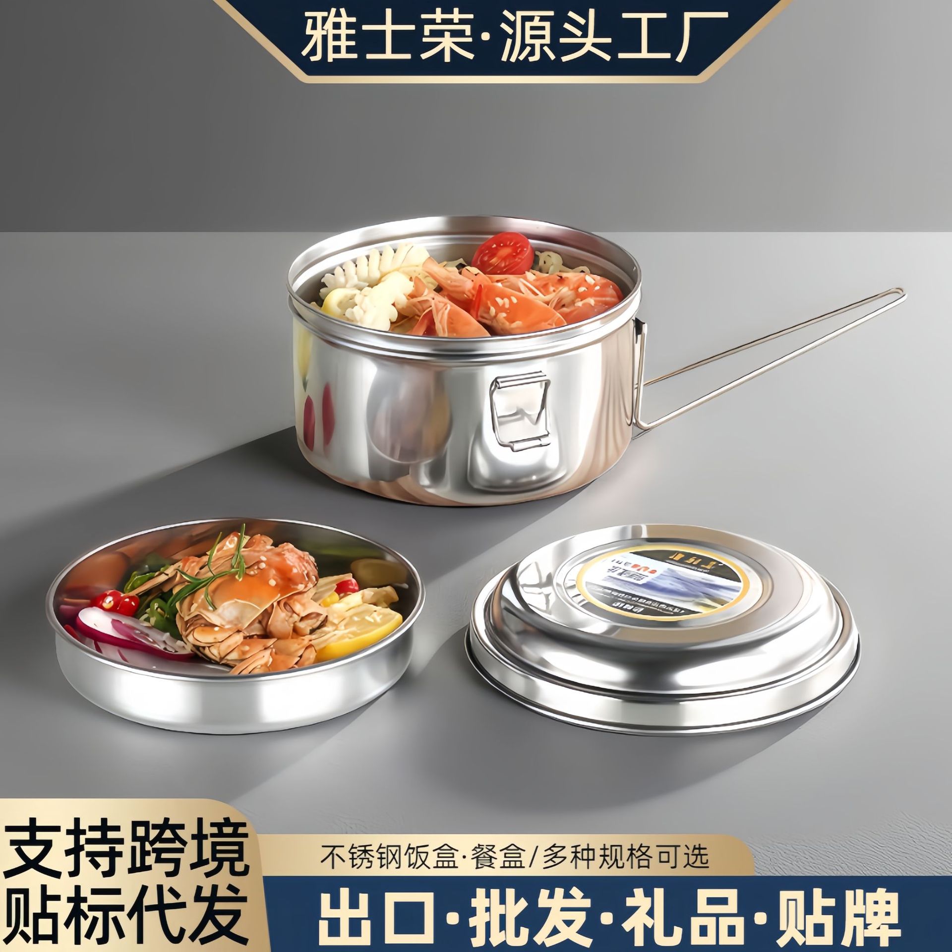 304ステンレス円形弁当箱日本式大容量シングル二重弁当箱学生食堂分格弁当箱