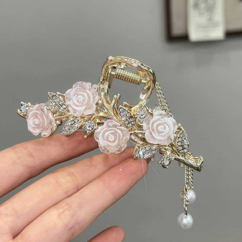 韓国の小香風AB面ツバキの花は盤の優雅な気質の団子の頭の高い馬尾のヘアピンの女性の髪飾りをつかみます。