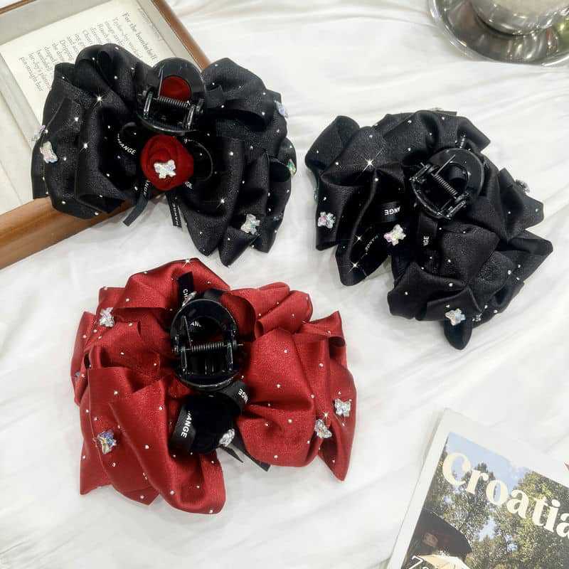 蝶結びの頭飾りは水ドリルのアーチ型のアヒルの口をはめ込んで女性の高級感の気質の後頭部の大きいサイズの1字のクリップの頭飾りを挟みます。