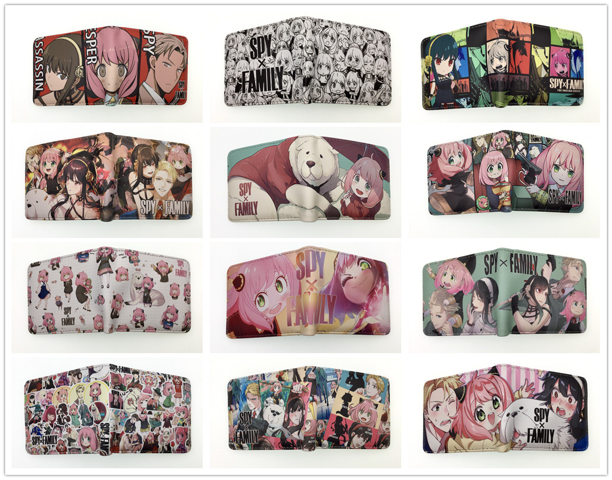 アニメのスパイのままごとの周辺のpuの財布の短いモデルの漫画のかわいい学生の男女の薄い財布のカードは卸売りを包みます。