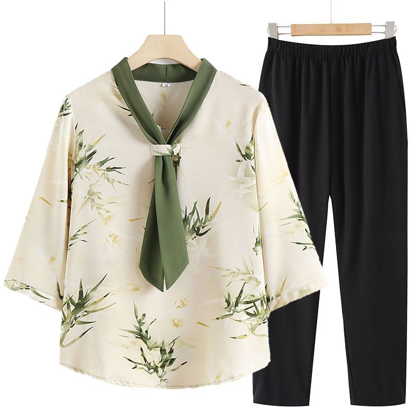 お母さんの中年の洋風の夏服のスーツの半袖のtシャツのシフォンのシャツの新型の薄いタイプの婦人服の中高年の上着の気質