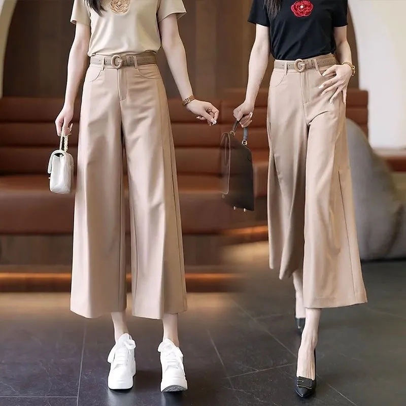 ゆったりとした七分のワイドパンツ女性2025夏の新型韓国版はやせています。