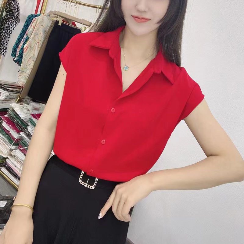 白シャツ女性vネック半袖夏新型速乾高級シフォン修身痩せ職業正装OL作業服