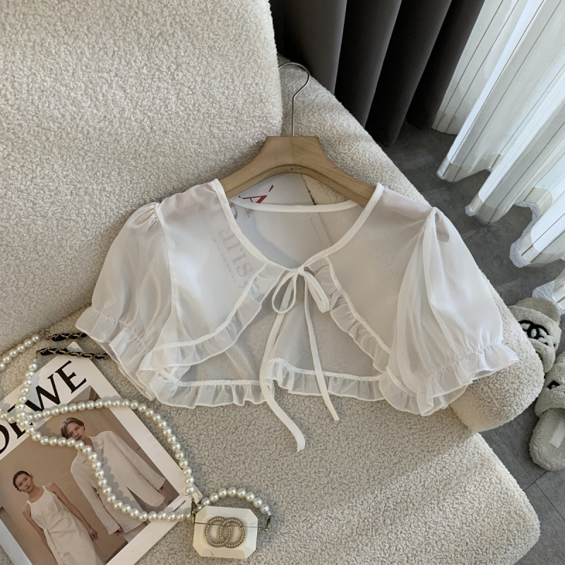 夏のスカートの小さいコートの女性の短いタイプの薄い外はネットの紗の小さいマントを掛けます。