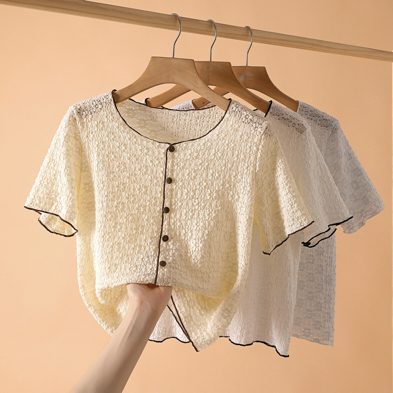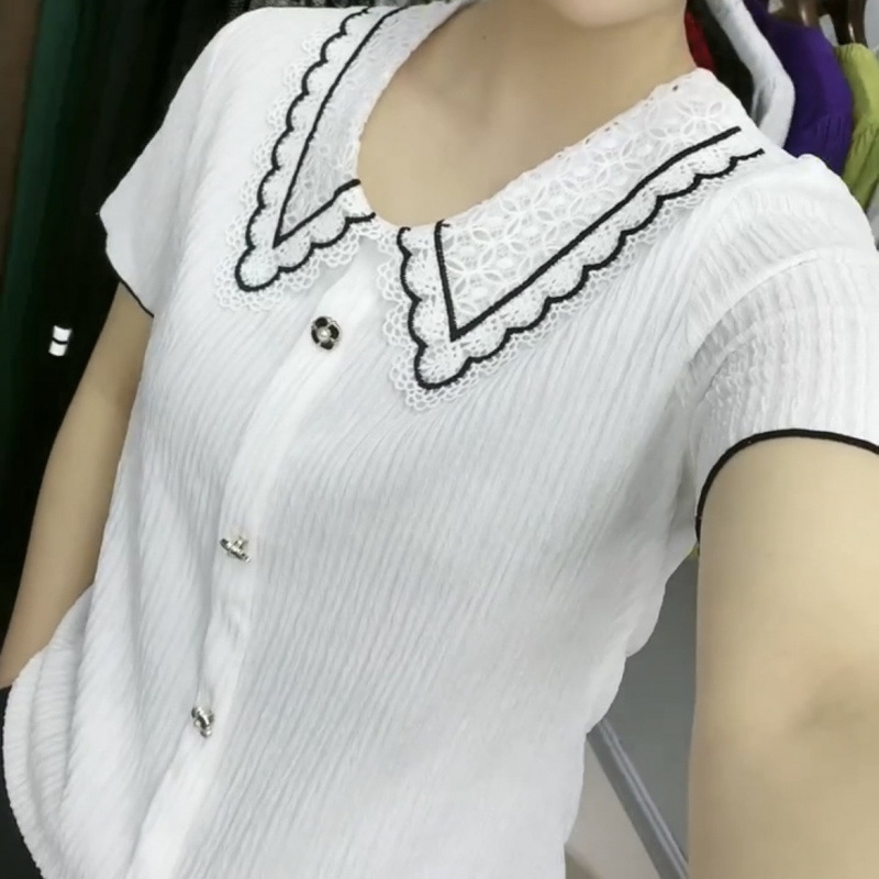 透かし彫りの半袖の女性の夏のシフォンの独特で美しい小さいシャツはゆったりしています。
