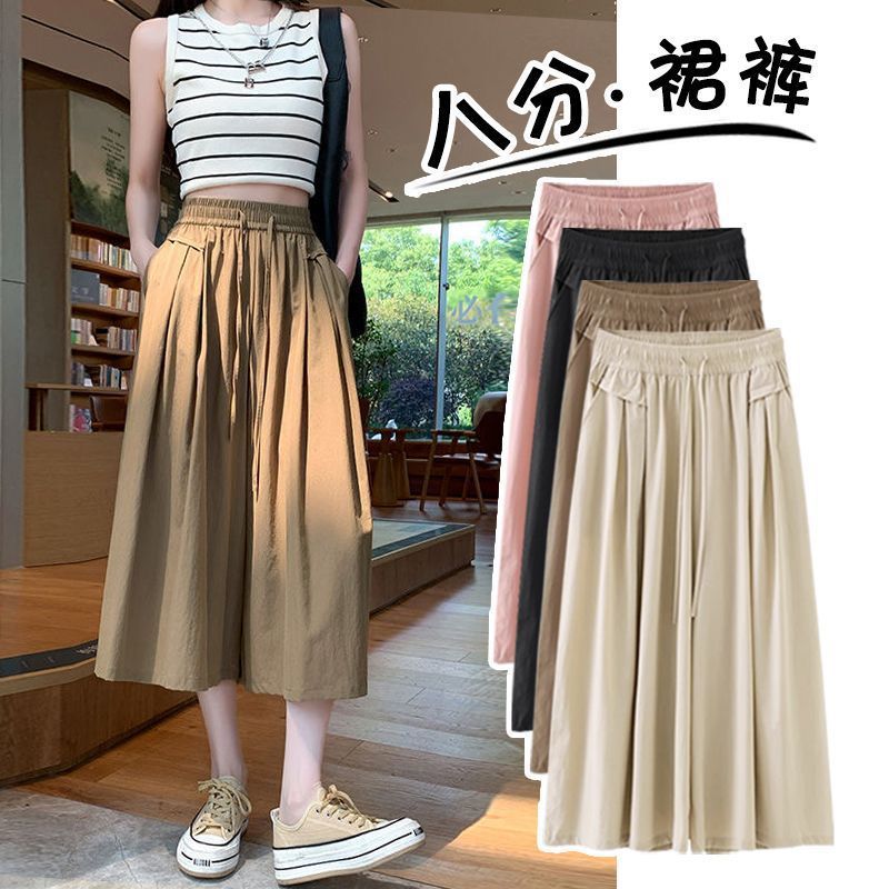 夏の薄いタイプの怠惰な風の氷の糸の速乾の女性の大きいサイズのカジュアルな5分のズボンの半身のスカートのズボンの大きいズボン
