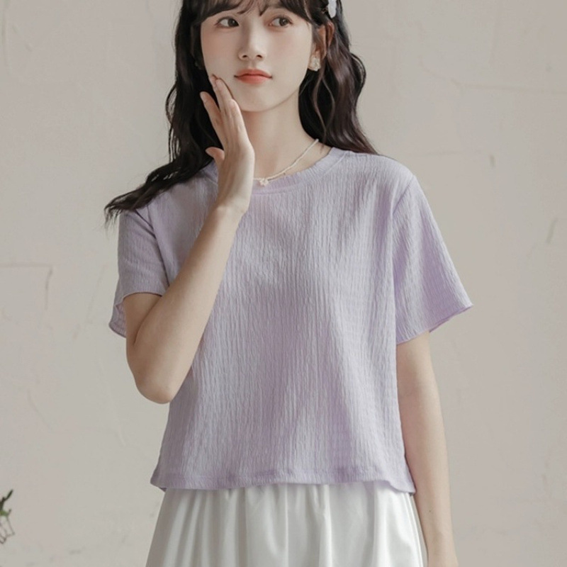 2025 夏の新スタイル甘くて新鮮なラウンドネックシンプルな半袖プルオーバーシフォン Tシャツトップ女性の無地デザイン