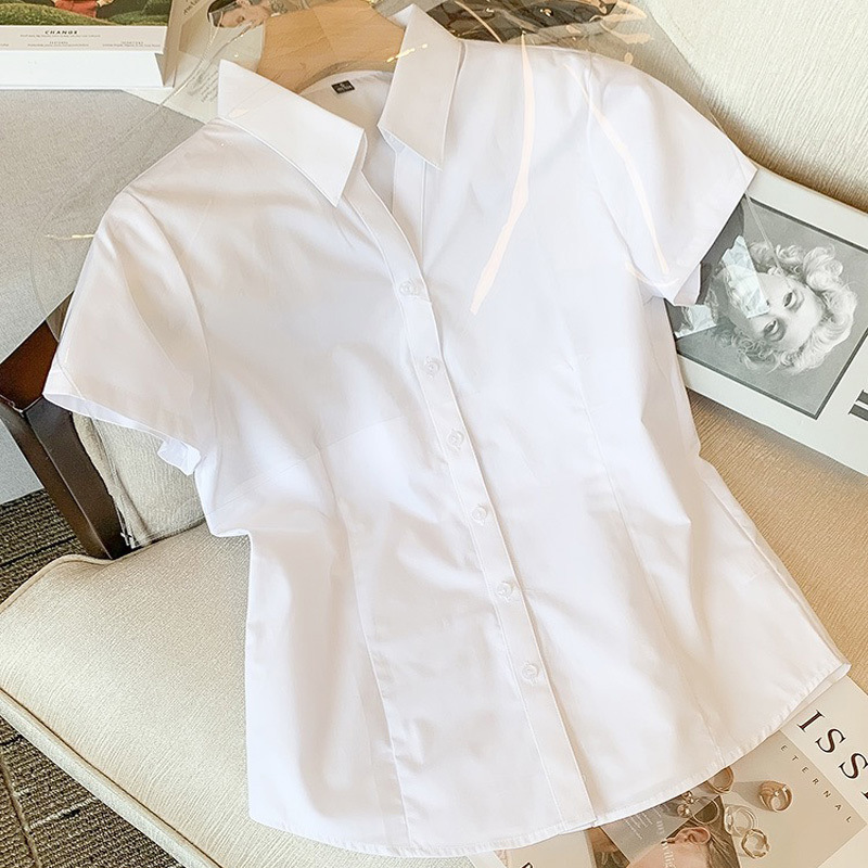 新型職業白シャツ女性夏の薄いvネックの通気性があります。