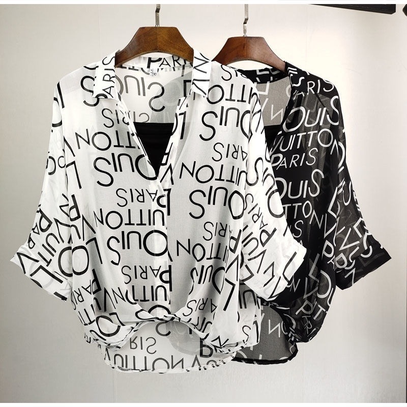 夏のシフォンのシャツのストラップの2つのセットの2025新型の女性の上着のコウモリの袖の韓国版はゆったりしていてやせている半袖のシャツを現します。