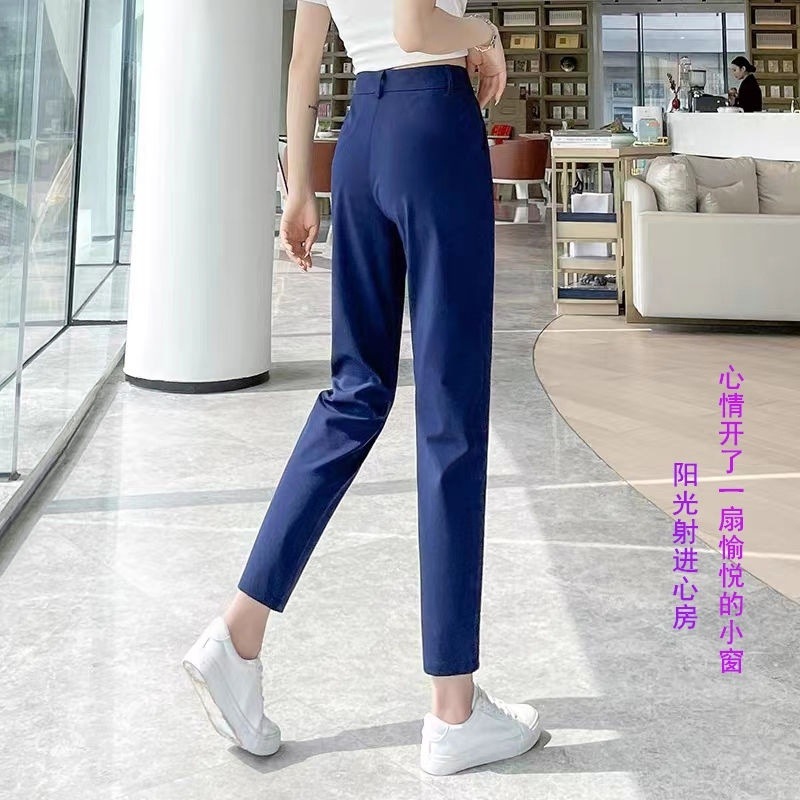 九分煙管スーツのズボンの女性の春夏の薄い金のまっすぐな筒の高い腰の修身の百合はやせているカジュアルな小さい足の職業のスーツを現します。