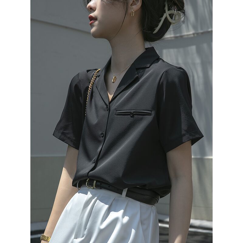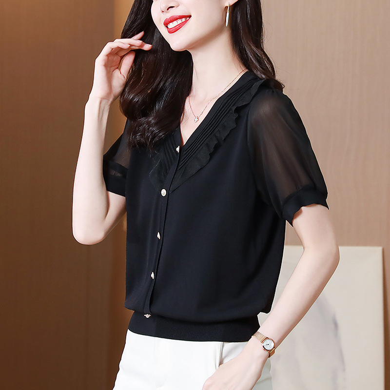 フランスの方襟半袖シフォンシャツ女装夏服の新しいデザイン感があります。