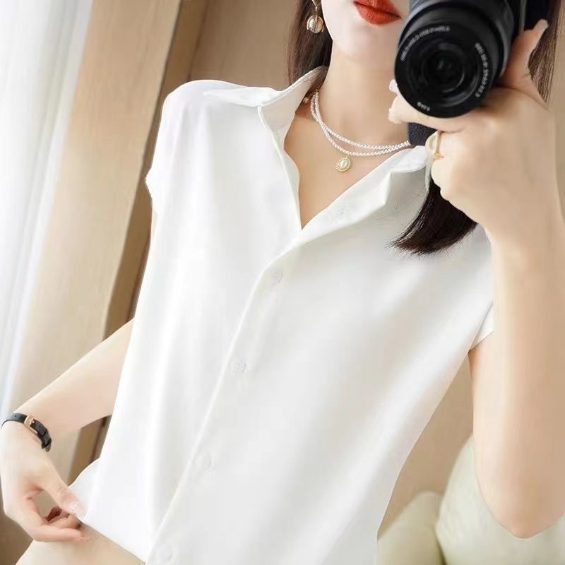 女性のための白い半袖シャツ夏の新しいデザインニッチショートシフォンシャツハイエンド多用途ハイエンドトップ