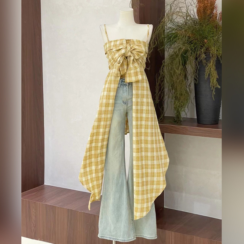 フランスのノースリーブの上着の格子が不規則で、肩のギャルが痩せています。レトロな上着は通勤2025新型です。