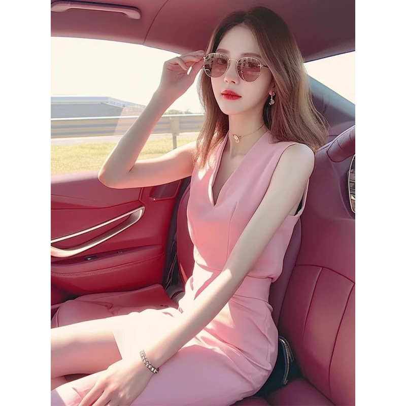 小香風ピンクカジュアルファッションスポーツスーツ女性夏爆街減齢洋気袖なしワイドパンツ2点セット
