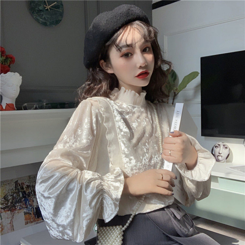ベルベット/ベルベットなしレースシャツ女性2025秋冬新商品洋気韓版ネット糸に超仙シャツをかける
