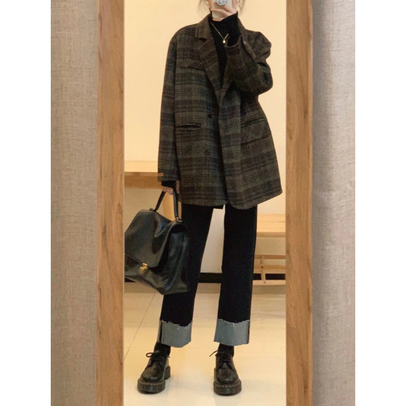 小香風千鳥格子コート女性秋冬2025年新作百合韓国版ゆったり厚手ラシャコート