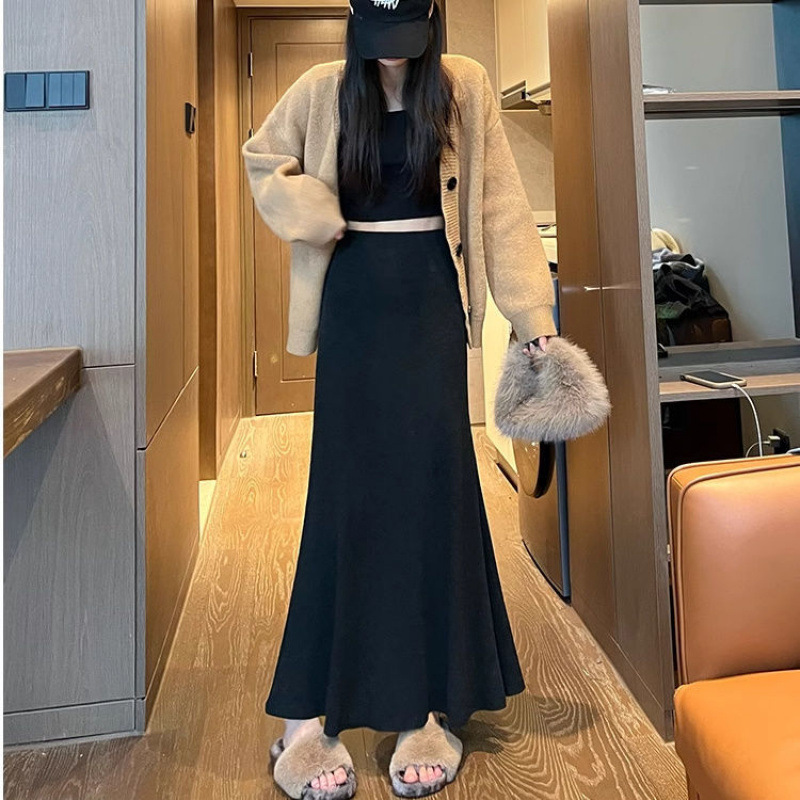 黒い魚の尾のスカートの女性の秋冬の百合の気質のa字のスカートはヒップのスカートを包んで見せます。