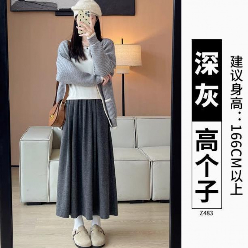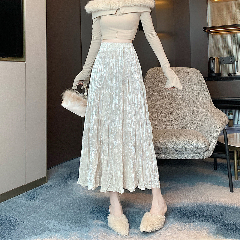 金のベルベットの半身のスカートの女性の秋冬2025の新型の小さい背の百のスカートの垂れ下がった感のしわのa字の春と秋のスカート