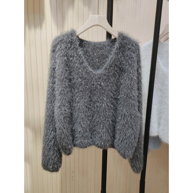 ゆるい怠惰なミンクのベルベットの短いプルオーバーのセーターのコートの女性の秋冬の外に柔らかいモチの明るいニットの上着を着ます