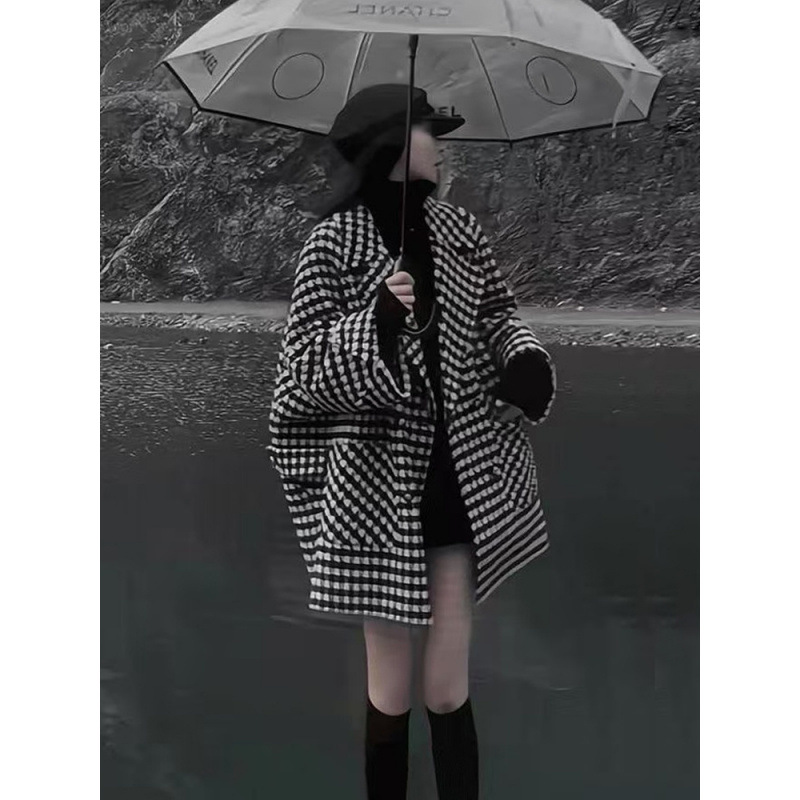 フランス式の小さい香りの風の千鳥の格の毛のコートの女性の秋冬の新型の中で長いタイプは綿をプラスして厚くて暖かいラシャのコートを厚くします。