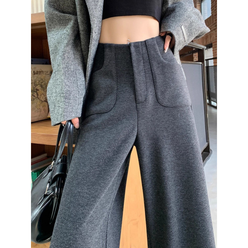 黒灰色の毛は、ワイドパンツの女性秋冬には、ストレートパンツの高さを厚くして、カジュアルな人の字のスーツのズボンにベルベットをつけます