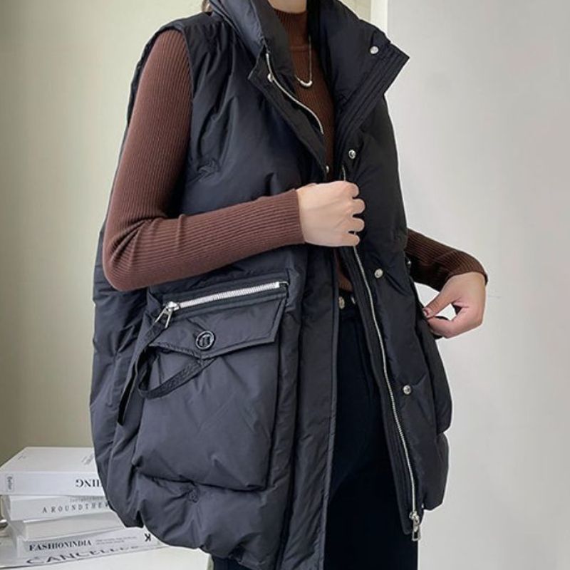 秋冬の綿服のダウン綿のベストの女性は洋風を着ています。