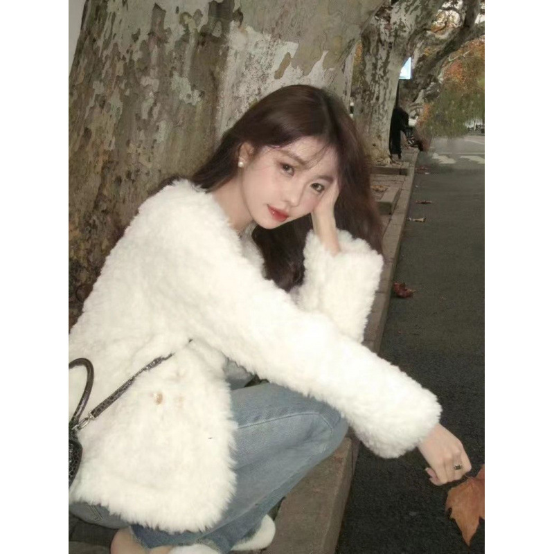 2025秋冬の新型の小さい香りの風の環境保護の子羊の毛のコートの女性の学院の風の綿服は厚い毛の短い上着を厚くします。