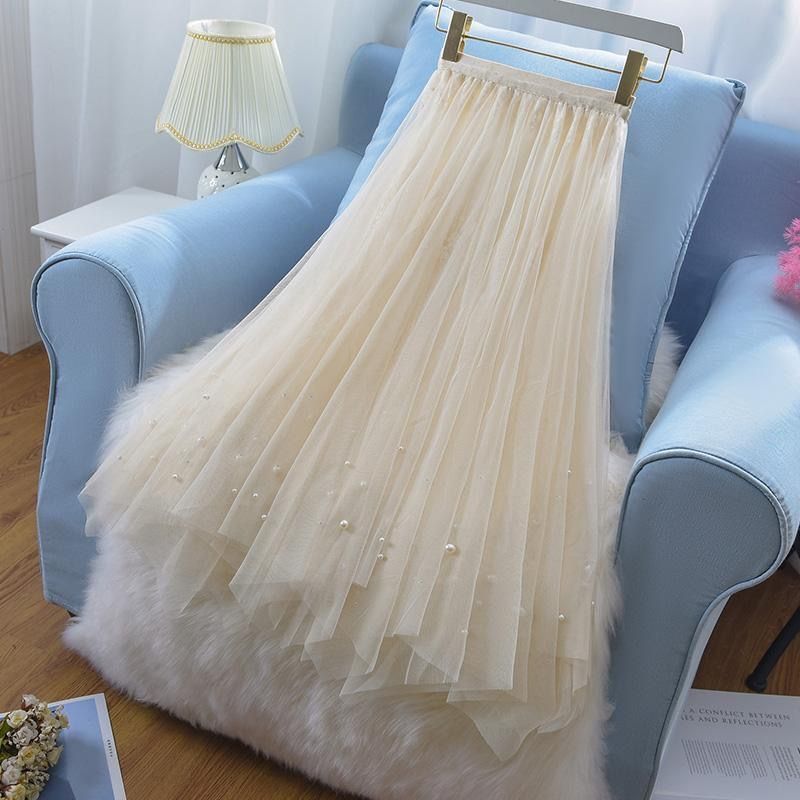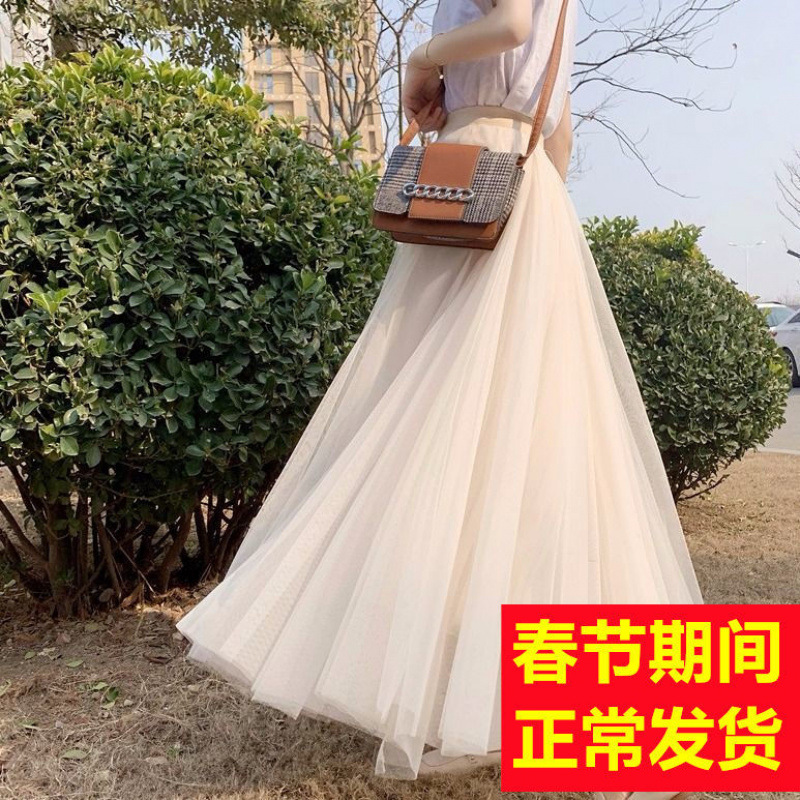 半身のスカートのa字のスカートの女性のロングタイプの2025秋冬のとても仙の流行の心機のガーゼのスカートのinsの超火の網の紗の妖精のスカート
