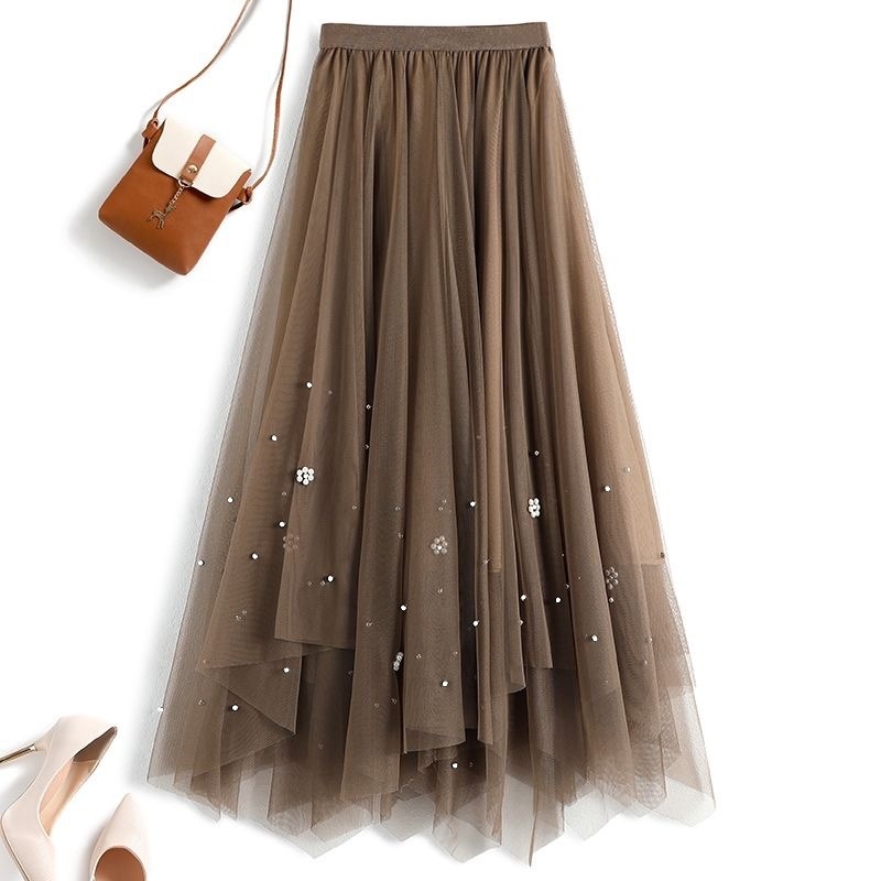 釘珠四季型半身ネットスカート2025型高腰ミディアムロングアンドロメダA字大振り子痩せスカート