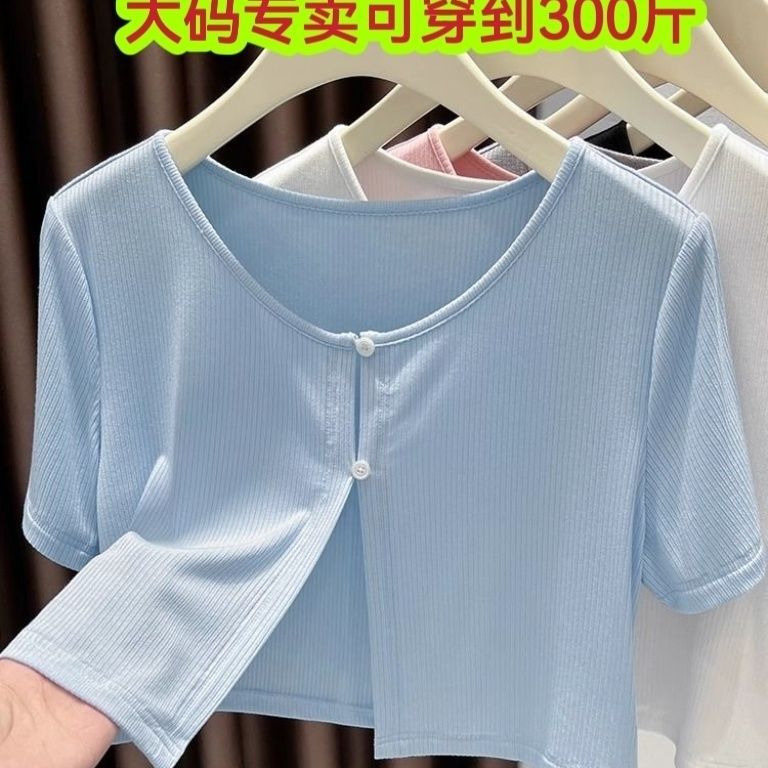 日焼け止めショール、大きいサイズの太ったmm半袖カーディガン、夏用ショール、薄手のブラウス、ジャケット、トップス、女性用チョッキ