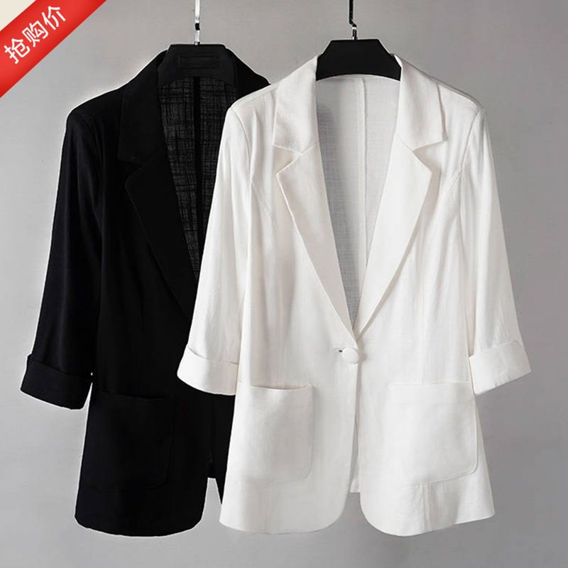 薄い綿とリネンの小さなスーツ大きいサイズのショートコート女性のための 2021 春と夏の新しいスリムで通気性のある太った女の子のカジュアルな小さなスーツ