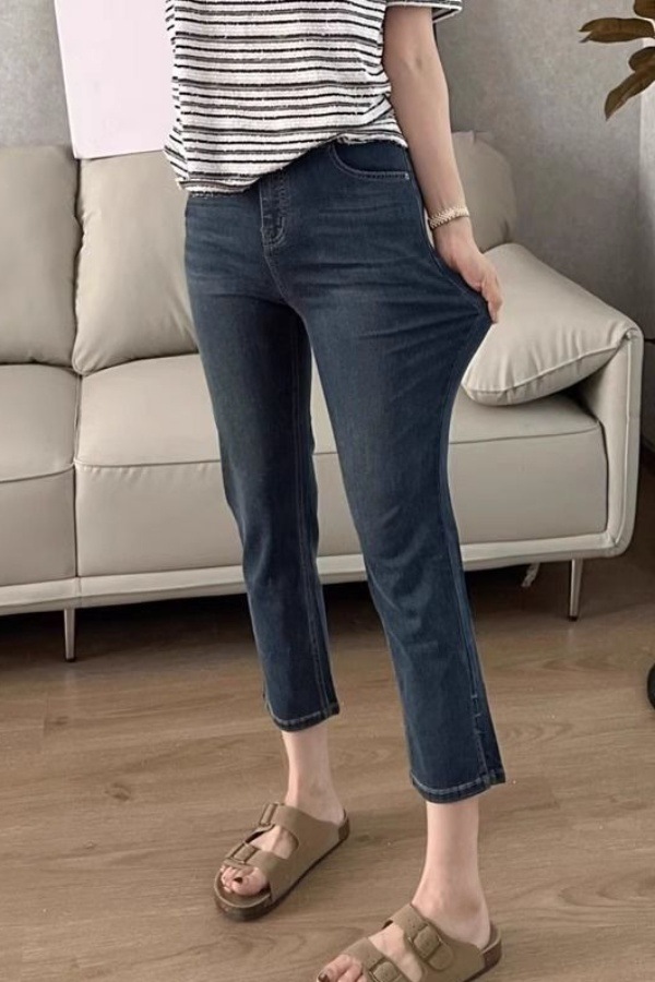プラスサイズのハイウエスト夏薄いアイスシルクジーンズ女性用、太ったmm痩身ストレッチスリットファッショナブルな洋ナシ型ボディパンツ