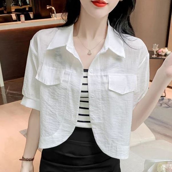 半袖ショートレディースシャツ日焼け止め服女性の夏の新しいルーズカーディガンカジュアル薄手のジャケットニッチトップ