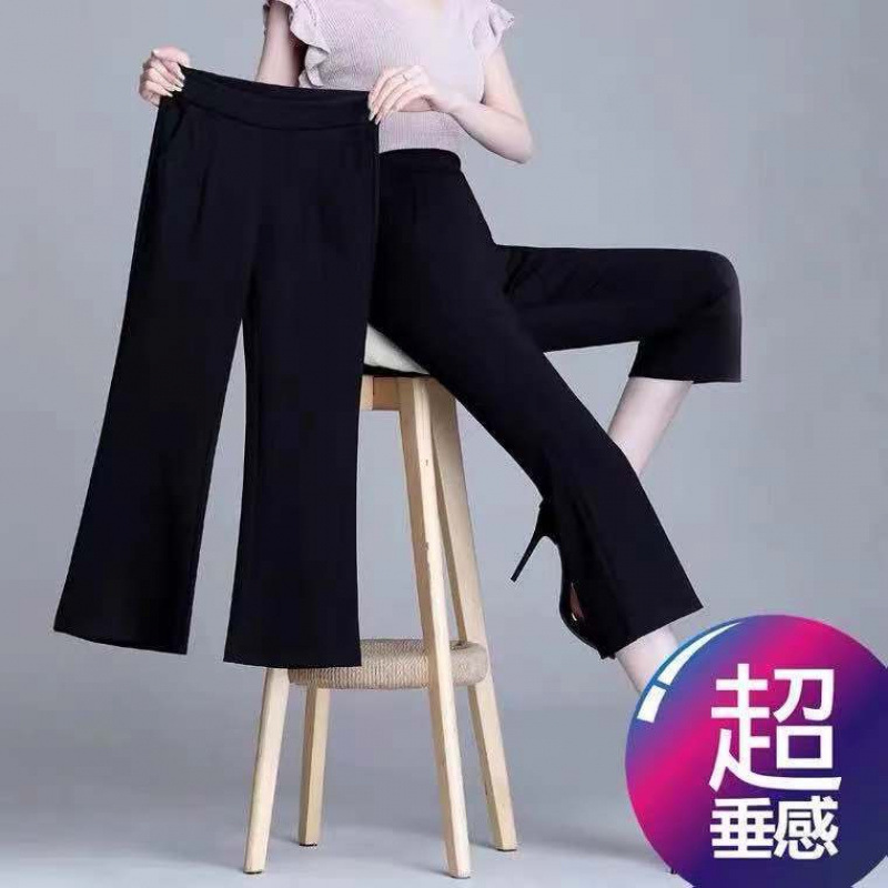 ズボン2025新型高腰垂感側開叉薄型のラッパズボンファッション高腰で痩せています。