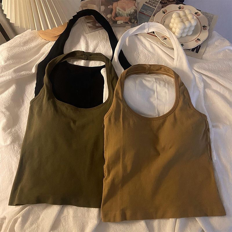 女性用ホルターネックキャミソール、インナートップ、セクシーで美しい背中、黒と白、胸パッド付きチューブトップ、ショートサマー
