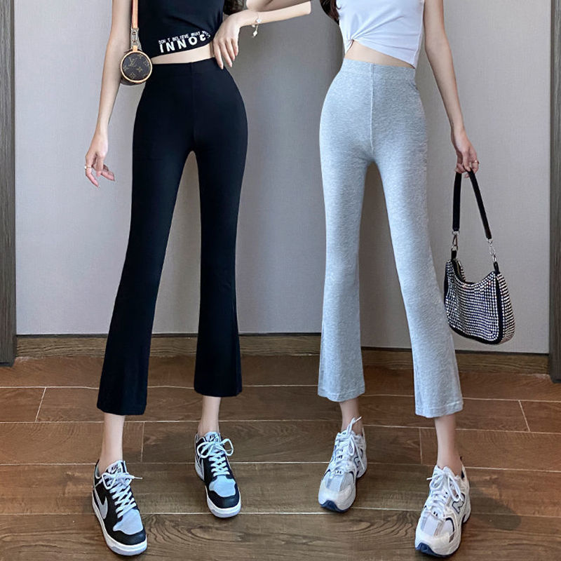 垂れ下がった感の7分の小さいラッパのズボンの子供の夏の高い腰の弾力性の黒色の広足の百合の修身の細いラッパのズボン