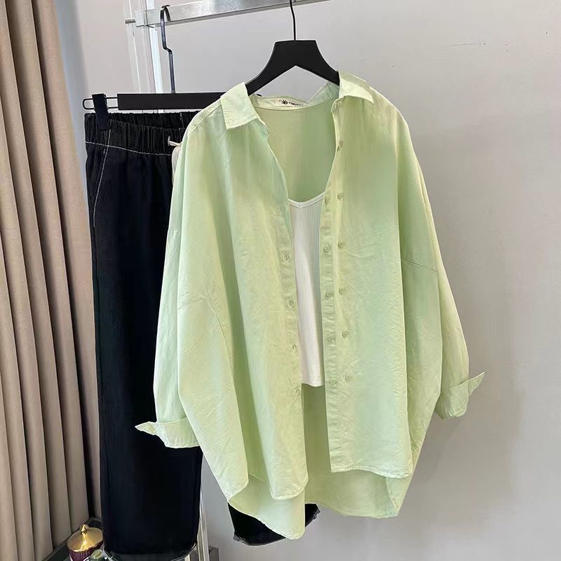 熱売外着垂感シルク綿シャツ女2025春夏韓国版ゆるいカジュアル薄手シャツ長袖日焼け止め