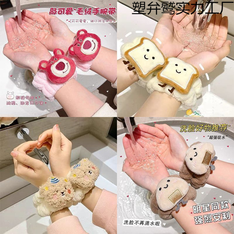 洗顔用防水リストバンド、吸水性、滑り止めヘアバンド、ブレスレットスリーブ、漫画のかわいい防湿リストバンド、ウォッシュバンド