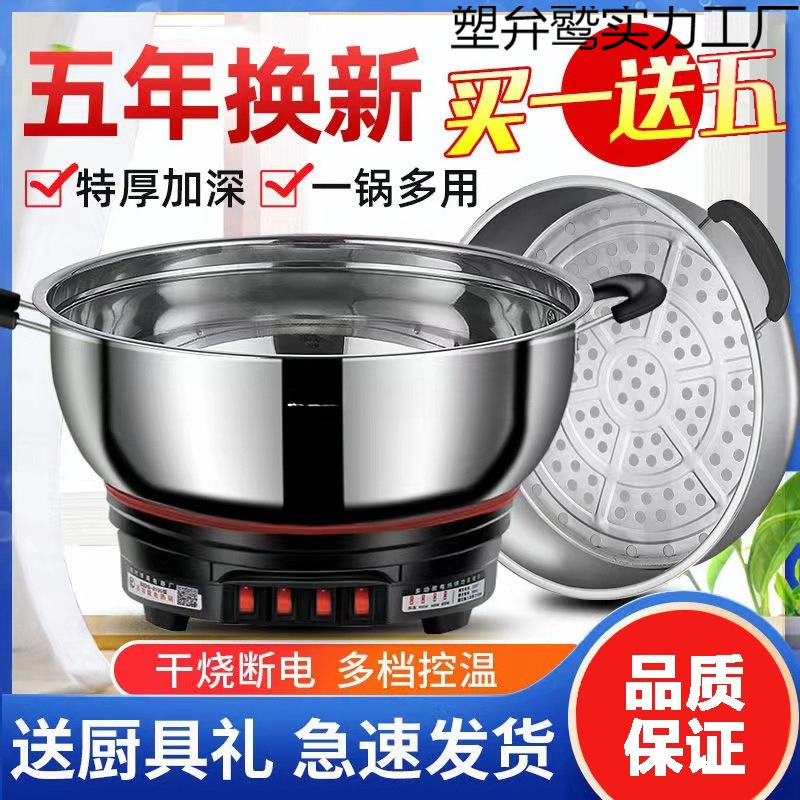 電気鍋多機能家庭用調理電気中華鍋オールインワンプラグイン大容量ステンレス鋼電気鍋蒸しと煮込み鍋