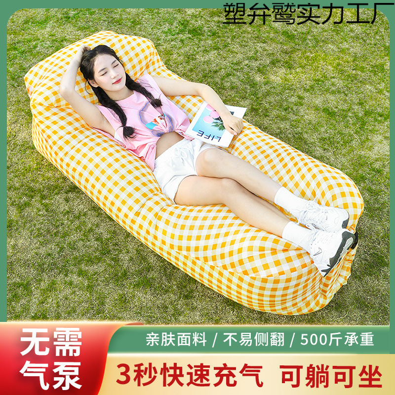 屋外怠惰なインフレータブルソファ折りたたみポータブルエアベッドピクニックキャンプインターネット有名人黄色と白のエアベッド