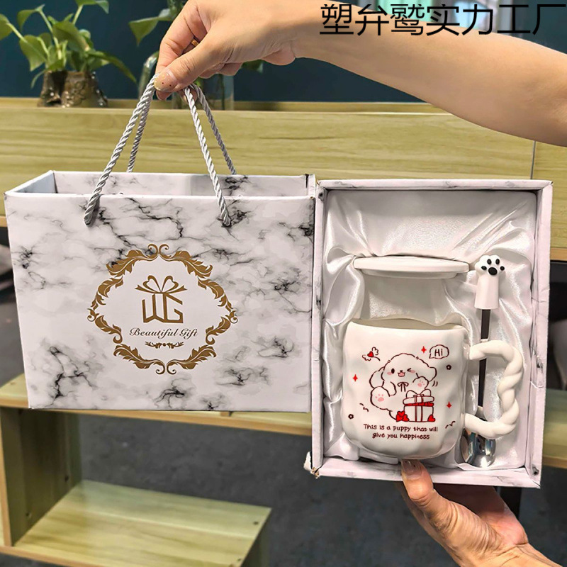 シンプルでかわいい子犬のセラミックマグ、見栄えの良いカップルのウォーターカップ、女の子や親友への実用的なギフト