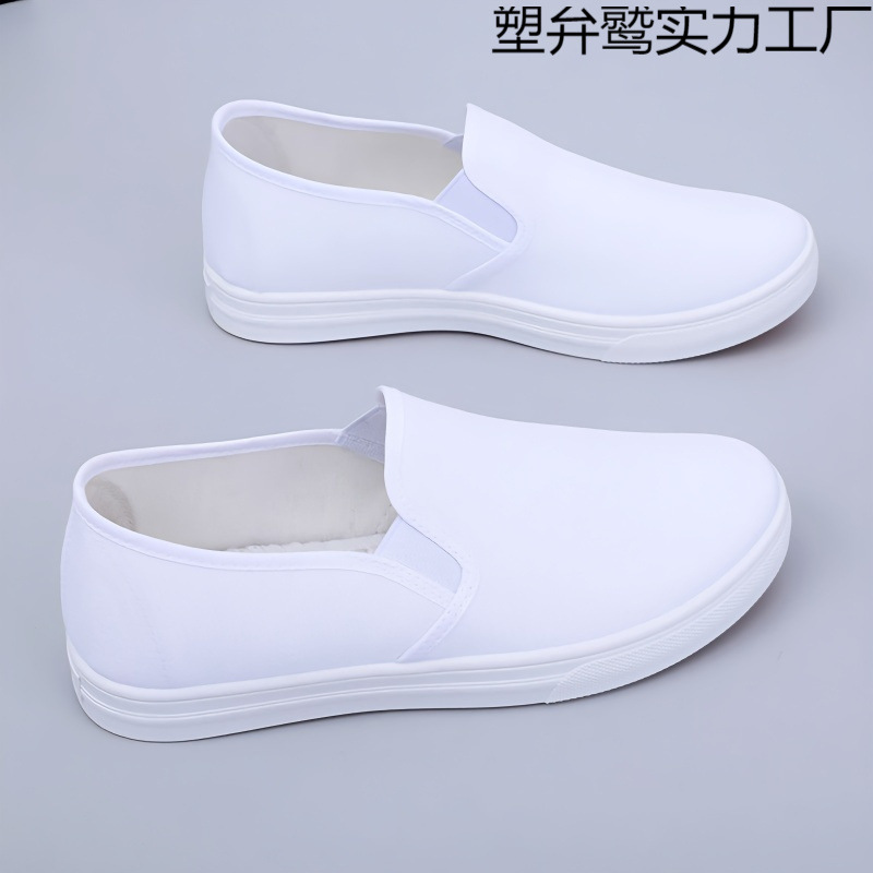 男性と女性のためのナースシューズ、白い平底の滑り止めロートップ、快適で軽い白い靴、女性のためのワンステップの古い北京作業布靴