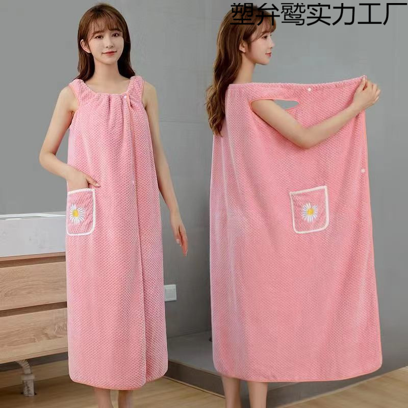 プラスサイズのウェアラブルバスタオル、新しい女性用サスペンダーバスローブ、厚手の大人用バススカート、純綿よりも吸水性が高く、ウェアラブルです。