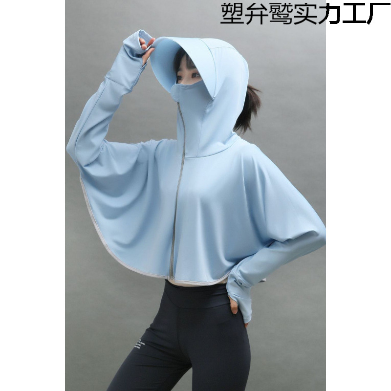 女性用日焼け止め服、帽子付きショートスタイル、新しい美しい日焼け止め服、UV保護アイスシルク日焼け止めジャケット